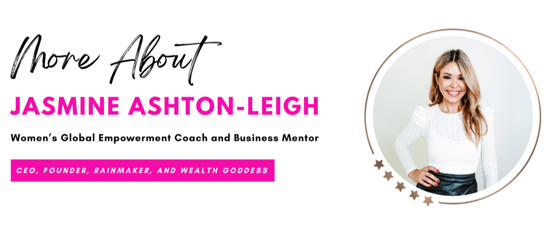 With over 12 years of experience, Jasmine Ashton-Leigh, a speaker and master practitioner of Neuro-Linguistic Programming (NLP), Time Line TherapyÂź, and Hypnosis, is a highly qualified expert in her field. She helps ambitious women learn how to be successful, attain their personal and business goals, and create rapid leveraged success â personally, professionally, and financially.